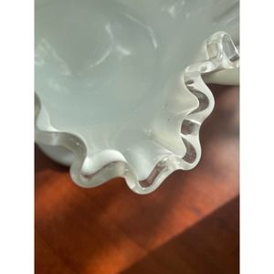 Gorgeous Fenton Silvercrest white milk glass compote, 6" tall x about 8" in diameter overall across the bowl. This is nice ruffled pattern, please note there are no chips or cracks.