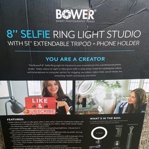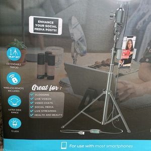 This is an 8" SELFIE RING LIGHT STUDIO with 51" EXTENDABLE TRIPOD + PHONE HOLDER