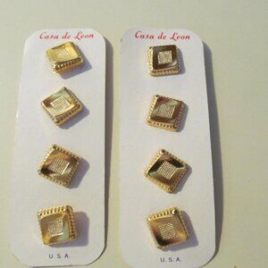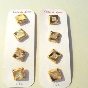 8 square 1/4" GOLD PLASTIC ( CASA DE LEON) BUTTONS U.S.A. VINTAGE ORIGINAL PACKAGE. WHOW!!