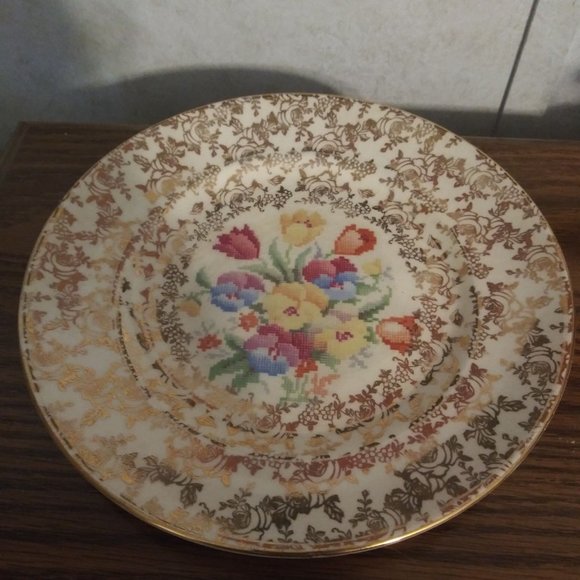 8" Sandwich Salad Plate "Old English Sampler" H&K Tunstall England