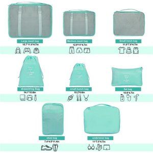 8 Set Packing Cubes for Suitcases Blue Travel Luggage Packing Organizers