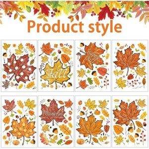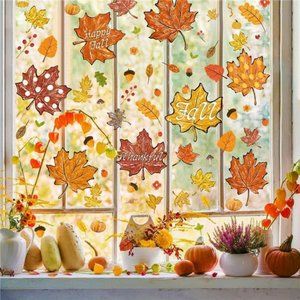 🧿【Easy to Use】 No need for adhesives or glues, Just clean the surface of the pasted object before pasting, tear off the pattern you want and install it on smooth surface with gentle press. These Autumn Window Clings sticks firmly and won't fall off easily.