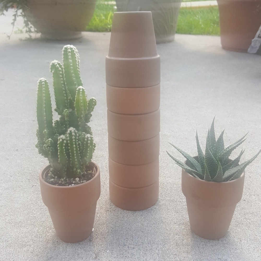 I am selling 8 small terracotta flower pots. These would be perfect for seed starting or a mini succulent garden. No chips or blemishes. Plants not included. $15 for all or $2 each