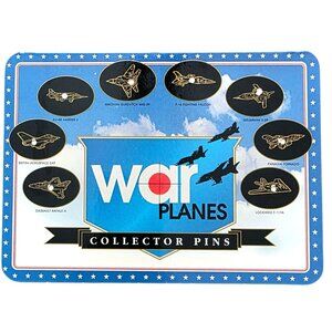 This vintage set of 8 war plane collector pins features detailed designs with a durable metal finish, ideal for enthusiasts and collectors alike. Could be used as lapel pins or tie tacks.