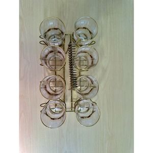 8 Vintage 1950's Block Geometric Tom Collins Glasses Gold Rim Metal Carrier