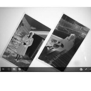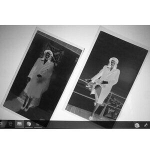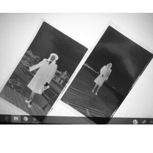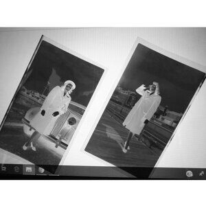 Ephemera, lot of eight vintage black and white photo negatives, approximately 4 1/2 by 2 3/4 inches, all of a nicely dressed woman, perhaps on a date night, and in one she stands in front of an auto whose license plate clearly reads Fort Monmouth NJ, 44.
