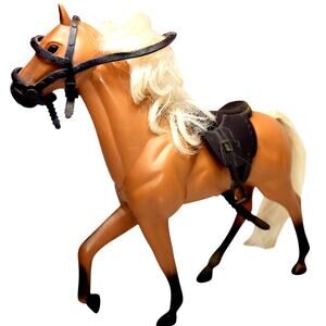 8" Vintage Beautiful Palomino Model Horse W/Rooted Mane & Tail ~Bridle & Saddle
