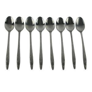8 Vintage Superior Stainless Teaspoons, Gardenia Pattern, Floral MCM Flatware
