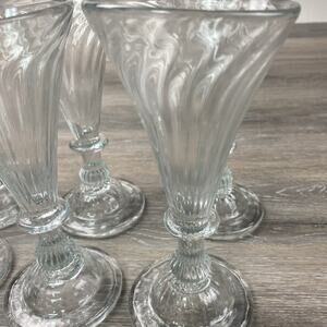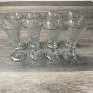 (8) Vintage Tall Colonial Ribbed Drinking Glass Hand Blown Unbranded 7 1/2
