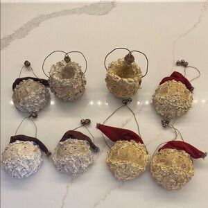 8 Vintage primitive Rustic Gold and Cream Hanging Ornaments