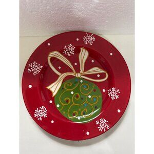 8 Vtg Pier1 Hand-Painted Ironstone Christmas Plates Red Holiday Ornament 8.75"