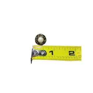 The product is an elegant white pearl gold rope metal fancy swirl plastic round shank button. It features a round shape, gold color, and a plastic material that adds a touch of sophistication to any sewing or crafting project. The pearl brand adds a touch of luxury to this embellishments, making it a versatile and stylish choice for various applications.