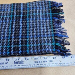 blue, grey, black, aqua herringbone like design soft winter neck scarf. Pristine condition.