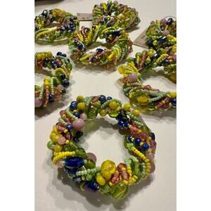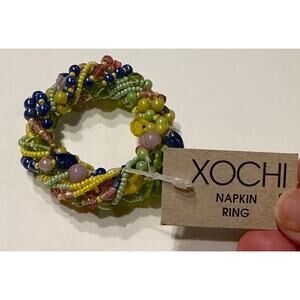 8- XOCHI Beaded Napkin Rings Green, Blue Yellow Purple, Pink New