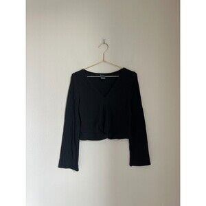 8 by YOOX Women's Twist Front V-Neck Long Sleeve Top in Black Size LARGE