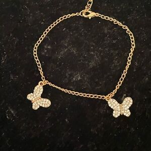 8” gold tone bracelet & 2 butterfly charms w/80 prong set Austrian crystals