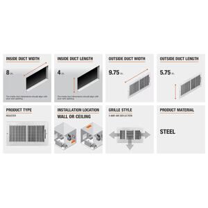 8 in. x 4 in. 3-Way Steel Wall/Ceiling Register, White, w/ Damper, W/O Hardware