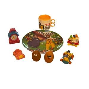 Up for sale is a delightful collection of vintage McDonald's Happy Meal toys! This 8-piece set includes a variety of fun and nostalgic items: a classic McDonald's plate, a durable plastic mug, a playful potato toy, and a charming train toy. Each item brings back memories of happy meals and childhood joy.