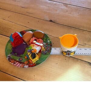 8 piece vintage McDonalds happy meal toys, plate, plastic mug. potato, train
