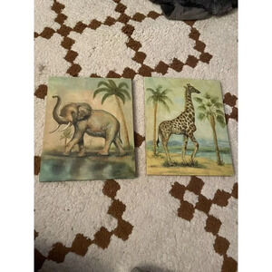 8 x 10" Elephant & Giraffe Wildlife Wall Hanging Decor