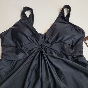 $80 18W slimming ISLAND ESCAPE BUST SUPPORT BLACK MINIMIZER SWIM SWIMSUIT DRESS