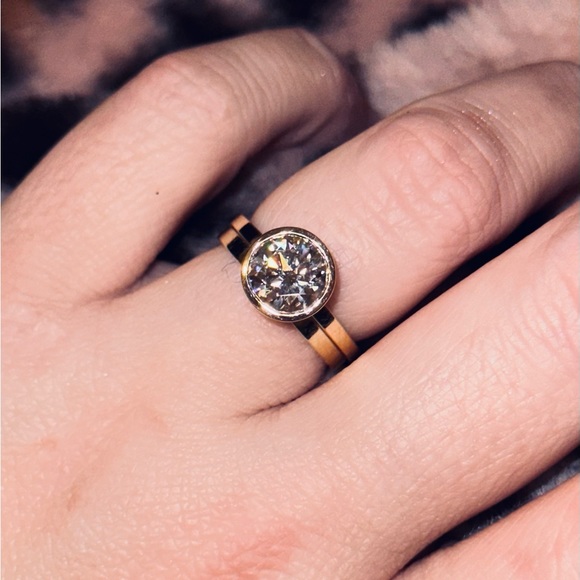 8.0 MM Round Bezel Yellow Gold Moissanite Wedding Set