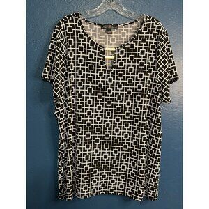 80 Park Avenue Black & White Square Pattern Short Sleeve Top Size 2X