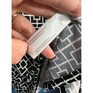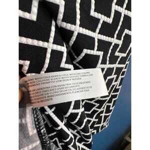 This 80 Park Avenue top features a geometric square pattern in black and white, offering a bold look. Made from polyester and spandex, it provides a comfortable fit with a touch of stretch.