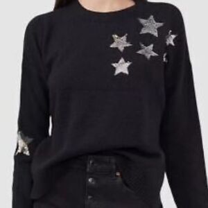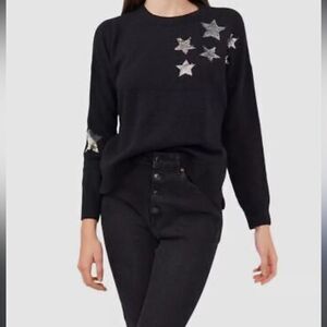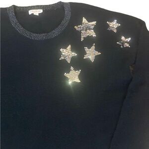 $80 Riley & Rae Women's Black Sequin Star Long-Sleeve Crewneck Sweater Medium