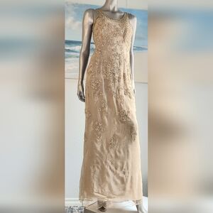 $8,000 OSCAR DE LA RENTA GLOWING BEAUTY, GOLDEN SEQUIN AND BEADED LONG GOWN US 8