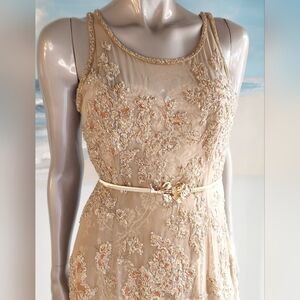 $8,000 OSCAR DE LA RENTA GLOWING GOLDEN SILK SEQUIN BEADED GOWN 8