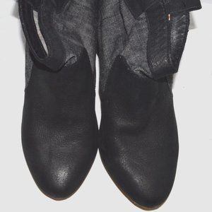 80%20 SZ 6 M BLACK LEATHER JEANS ANKLE BOOTS COVERED HIDDEN WEDGE HEEL BOOTIES