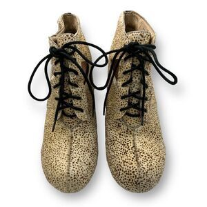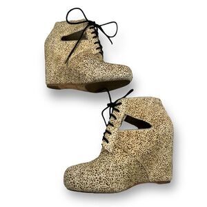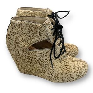 80%20 Fur Leather Lace Up Wedge Boots Size 8.5