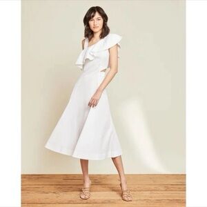 Veronica Beard Beilla One-Shoulder Ruffled Midi Dress Size 16 Color White