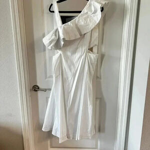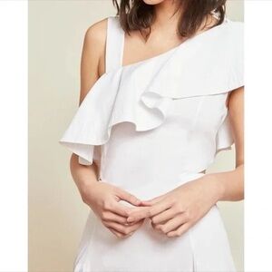 803 Veronica Beard Beilla One-Shoulder Ruffled Midi Dress Size 16 Color White