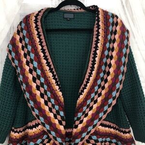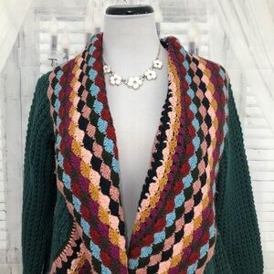 80-90s Look Women's Small Medium S/M Green Grandma Blanket Crochet Cardigan