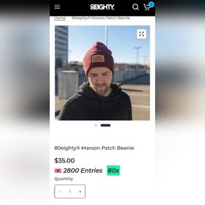 80EIGHTY MAROON PATCH BEANIE PREMIUM AUTOMOTIVE APPAREL ~