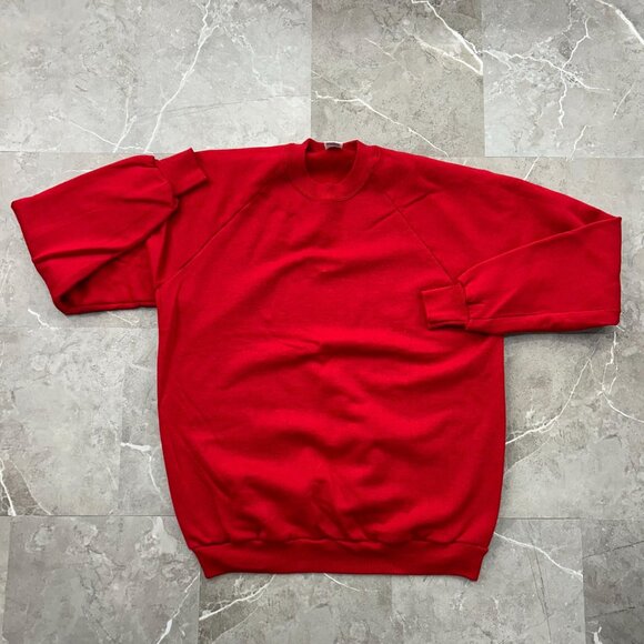 80S VINTAGE JERZEES CREWNECK SWEATSHIRT MENS 2XL XXL PULLOVER BLANK RED SWEATER