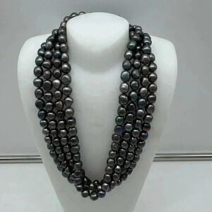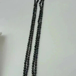 80inch Long Strand “IPS” Silver stamped Imperial Pearl Syndicate, blue black iridescent color.