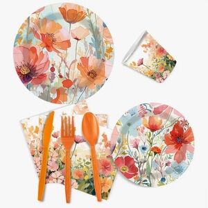 80-pc Vibrant Peachy Salmon Paper Tableware Party - Set for 10
