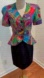 Tags: 1980s, Rimini, Julie Duroché, After Five, peplum, fitted top, sequin, bold print, satin skirt, cocktail outfit, glam, statement top, party wear, vintage eveningwear, multicolor, collector's piece, retro, fashion set, size 6, dramatic silhouette, 80s glam, artistic fashion, fashion history