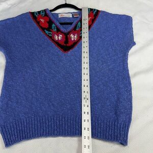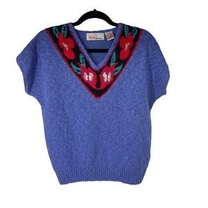 80’s 90’s Floral Embroidered V Neck Short Sleeve Sweater. Size medium with measurements in the pictures. Gently used condition with no rips or stains.