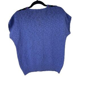80’s 90’s Floral Embroidered V Neck Short Sleeve Sweater Sz M