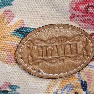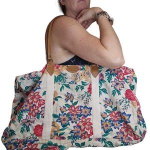 80s 90s Gitano Large Duffle Bag Tapestry Canvas Floral Leather Handles 20x13