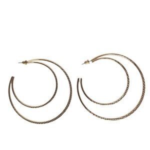 80s 90s Gold Tone Textured Large Double Hoop Earrings Womens Costume Jewelry