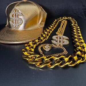 80s 90s Hip Hop Costumes Outfit Kit Rapper Accessories gold chain Bling