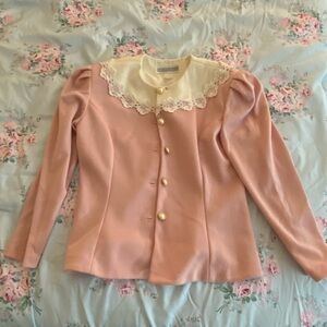 Light pink with cream and lace type collar