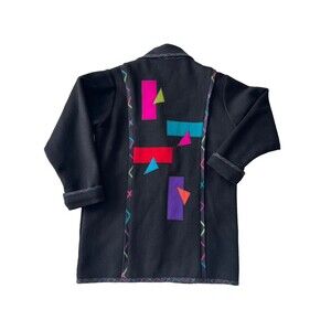 80s 90s Lynn Murray Wool Geometric Colorful Collared Button Front Coat Size