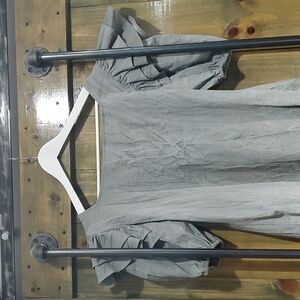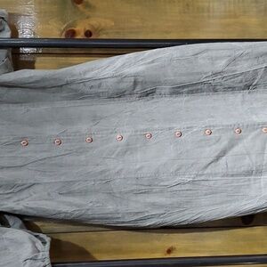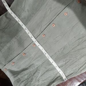 Buttons down front all present, length from front where button start to bottom hem is 40 inches, No size tag measures 19 inches across the chest from pit to pit and 17 inches across the waist when laying flat, estimated as size medium