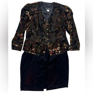 80’s 90’s Vintage David Rose Velvet Floral Blazer & Skirt Set Approx. Size 18 20